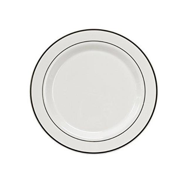DELUXE PLASTIC 6" PLATE, WH/SLV- 70CT